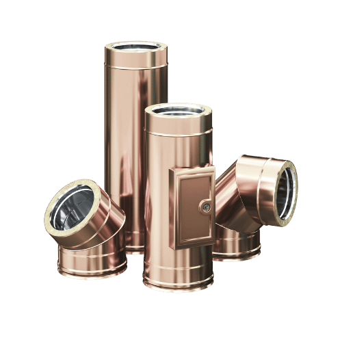 Il nostro catalogo include tubi a parete doppia coibentati con finitura in rame o in inox e una versione SLIM a parete doppia coibentata con finitura inox, nera e marrone. La sezione dedicata alla biomassa offre tubazioni per stufe a legna in acciaio al carbonio da 2 mm con finitura nera per generatori a legna, mentre per i generatori a pellet troverete una sezione dedicata alle canne fumarie per stufa a pellet realizzate in acciaio inox 316L con finitura nera, ideale per l’installazione all’interno dell’abitazione.