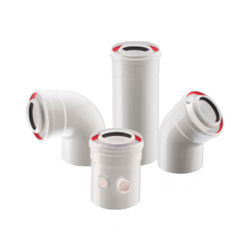 Non mancano tubi e raccordi per caldaie a condensazione; infatti, disponiamo di canne fumarie in plastica bianca (PP) mono parete per l’interno dell’abitazione, tubi in plastica bianca flessibile per intubare i vecchi cavedi. Per l'esterno dell'abitazione offriamo tubi e raccordi in doppia parete aria con interno in plastica e finitura esterna in inox o rame. Infine, è possibile trovare canne fumarie coassiali per caldaie a condensazione.
